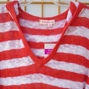 FRESH PRODUCE Los Cabos Stripe Hooded Pullover Sweater XS/Small Hibiscus Red $69