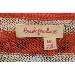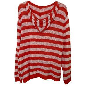 FRESH PRODUCE M L Hibiscus Hooded Pullover Sweater Los Cabos Red Melon Stripe