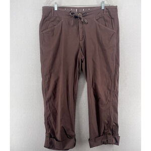 FRESH PRODUCE Pants Womens M Capri Drawstring Straight Leg Cropped Brown