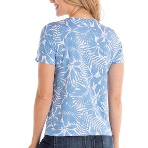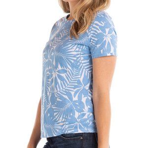 The Deep Jungle Scoop Neck T in Bayside blue features a fitted silhouette (size up for a more relaxed fit), a straight hem and scoop neck, and a cool-toned floral and fauna print. Made of 60% cotton/40% polyester, it's the perfect go-to t-shirt that you'll reach for again and again!