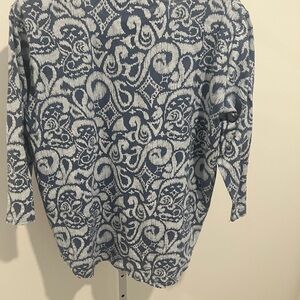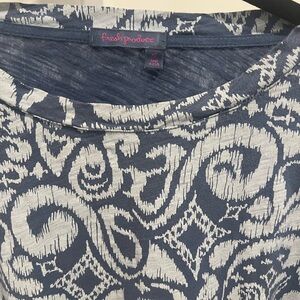 FRESH PRODUCE-blue patterned Top / 100% cotton knit hi-low tunic 3/4 slv-XS