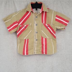 FRESH Squeeze Boys 4 Vintage Red and Tan Stripe Button Down Grandpa-Core