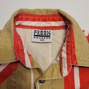 Red and Tan Stripes, 2 Chest pockets, boxy cut, early 80s, heavy denim jean like fabric, no known flaws.