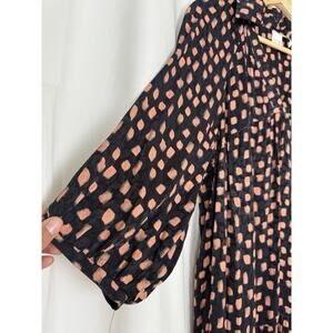 FRESHA London Navy & Coral Abstract Print Polka Dress Dot Size Small