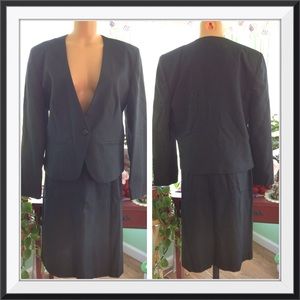 This is a very nice 2 PC skirt set. Looks like new. It has a zippered waist and the jacket is completely lined. It has a 1 button closure and faux pockets. Just got back from the cleaners, ready to wear. Pictures were before being cleaned.
