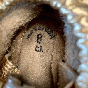 FRESHLY PICKED Gold Baby Moccasins 8 Fringe Leather Soft Sole Infant Moccs Shoes