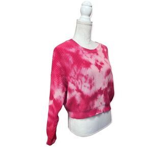FRESHMAN PINK BLEACHED TIE DYE RIBBED KNIT COTTON OVERSIZED SWEATER SMALL