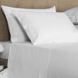 SELLING THIS BRAND-NEW FRETTE LUXURY PERCALE KING SHEET SET IN WHITE. THE LUXURY PERCALE SHEET SET IS 4 PIECES AND INCLUDES ONE KING FITTED SHEET 79 X 81 X 18, ONE KING FLAT SHEET 106 X 126 AND TWO KING PILLOWCASES 20 X 40 AND IS MADE OF 100% LONG STAPLE EGYPTIAN COTTON PERCALE.