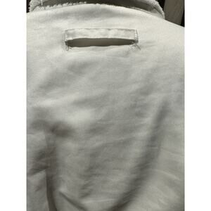 Ultra white heavy cotton exterior, lined with Turkish cotton toweling . It is totally reversible ( except for the label), even the tie is 2 sided. It looks very rich .