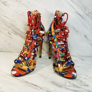 Elevate your shoe game with these stunning FRH Multicolor Lace Sandals Heels in Size 6. Perfect for any woman who wants to add a pop of color to her outfit, these gladiator-style heels feature beautiful lace accents that add a touch of elegance to any look. The synthetic upper material is both durable and stylish, making these shoes a must-have for any fashion-forward woman.