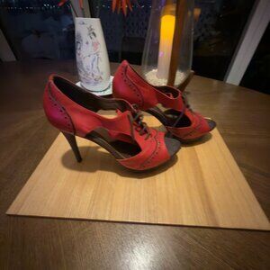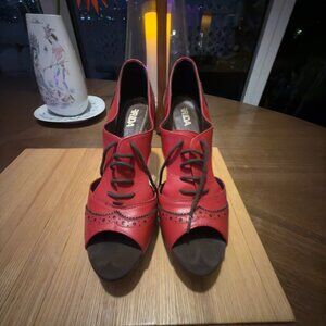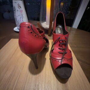 FRIDA Red Leather Lace-Up High Heel Sandals