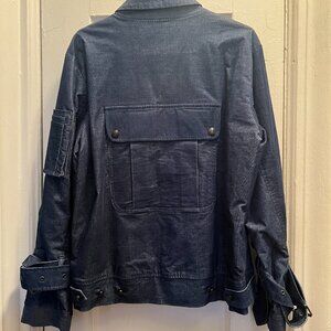 Interesting detailing - buckles on cuffs along with a scalloped neck and back and left arm pocket.