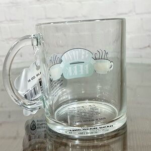 “FRIENDS” 16 oz glass mug with “Central Perk” logo on it.