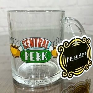 “FRIENDS” 16 oz glass mug with “Central Perk” logo on it.