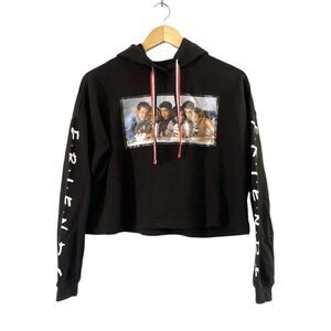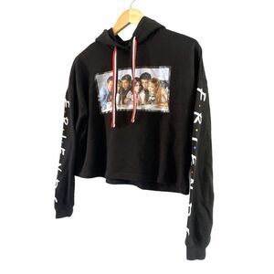 FRIENDS Black Cropped Long Sleeve Hoodie Sweatshirt, Size XS