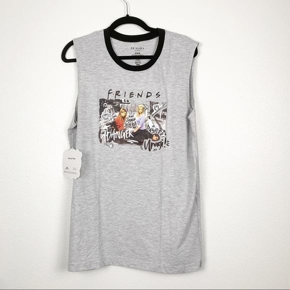 FRIENDS Sleeveless Crew Neck Graphic Muscle Tank Gray NWT