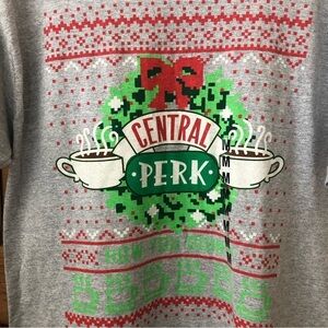 FRIENDS TV SERIES/ NWT/ Central Perk Coffee/ Gray/ Christmas Short Sleeve Tee/ size M /UNISEX