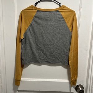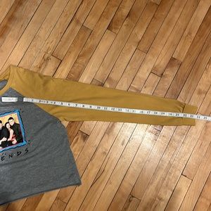 FRIENDS The Television Series Distressed Cast Photo Gray and Gold Long Sleeved Crew Neck Baseball Tee Style Crop Top