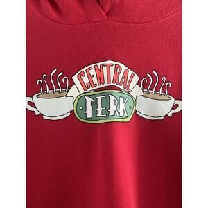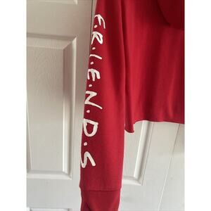 FRIENDS Women's Large Red Central Perk Graphic Pullover Crop Hoodie Cozy