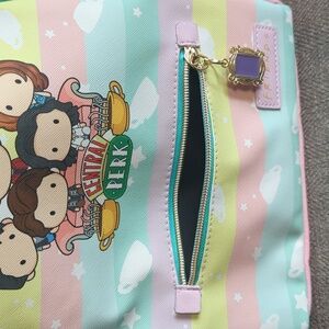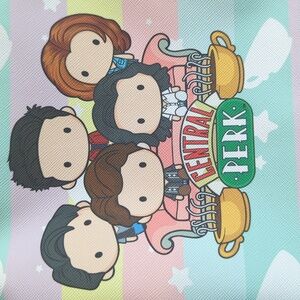 Brand new with tags. This adorable mini backpack is perfect for everyday use. Beautiful pastel colors with coffee cups and the cartoon Friends crew is sure to put a smile on any fans face! Great gift item or for yourself!