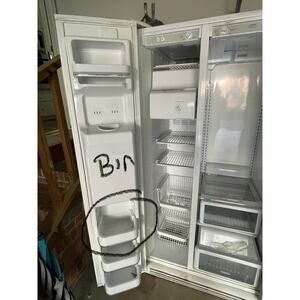 FRIGIDAIRE Side-By-Side Refrigerator White Door Freezer Replace Bin #2153905 - From a 1990's Frigidaire Side-By-Side Model FRS28XGCW0, but may fit other similar sized fridges. At the time of this listing, there are several for sale. Buy more and save! Pre-owned condition. It is scuffed/scratched inside and cleaning may be required. No cracks or broken pieces. Review photos carefully for all details.