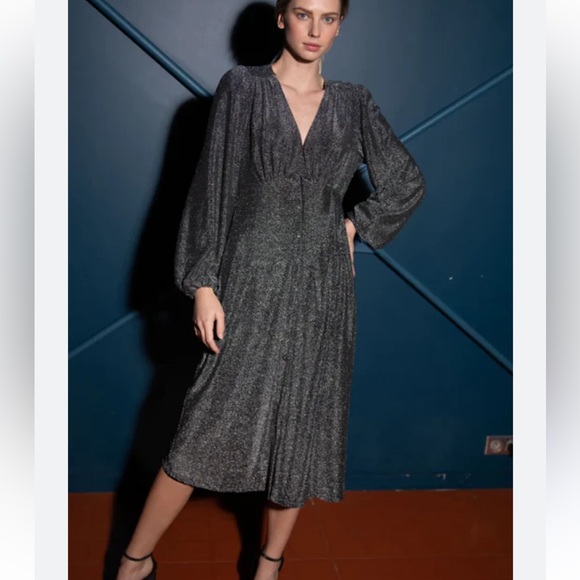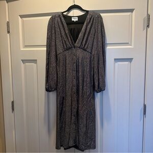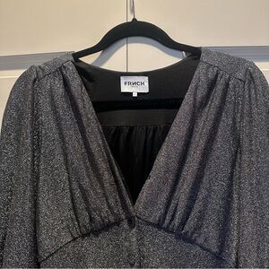 Fully lined, FRNCH black sparkle midi dress. This button front dress is in excellent pre owned condition and was only worn once for Christmas.