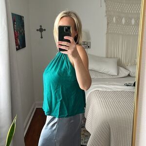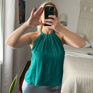 FRNCH Blouse Womens‎ Small Green Halter Neck Sleeveless Shirt Top