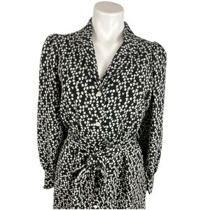 FRNCH Floral Print Black and White Midi Button Down Dress