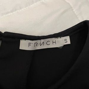 This is such an adorable LBD! Made of thicker polyester with a slight sheen to it. Really flattering and flowing fit. Slightly shorter in the front than back.