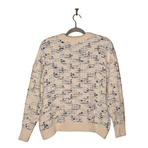 FRNCH NEW $92 Crewneck Metallic Multi-Yarn Knit Winter Sweater White Blue S/M