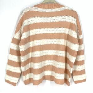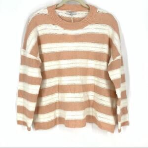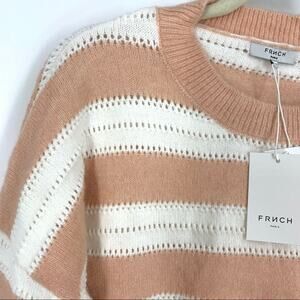 FRNCH Nadiege Striped Boxy Pastel Pink Crewneck Sweater S/M NWT