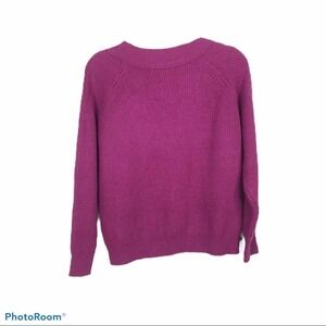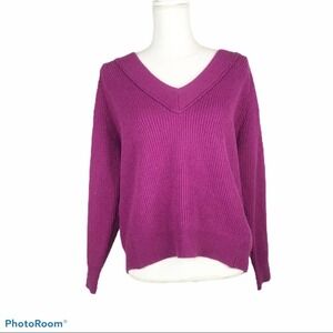 NWT FRNCH Paris women's, vneck, long raglan sleeve, purple ribbed knit pullover sweater.