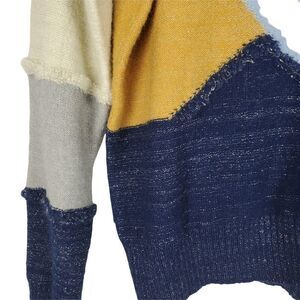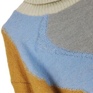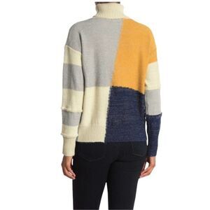 FRNCH PARIS Wool Abstract Color Block Turtleneck Sweater Patchwork Metallic Warm