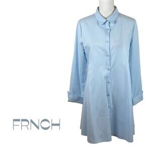 FRNCH Pale Blue Light Academia Button Down Shirt Dress NWOT Size L