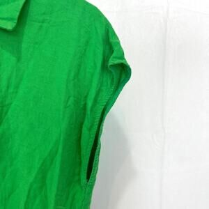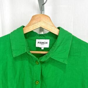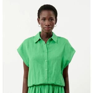 FRNCH Paris Elvan Shirt Button Up Boxy Cap Sleeve Linen Blend Green Size L