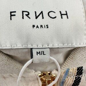FRNCH Paris Jacket Womens Large Zip Up Metallic Gold Pinstripes Lightweight