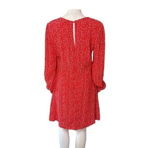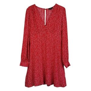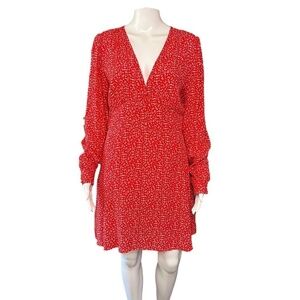 FRNCH Paris Large Bohemian Red Floral Mini Dress V-Neck Long Sleeve Lined Casual