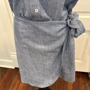 FRNCH Paris Linen Blend Denim Wrap Tie Waist Dress Size Sm rn 159143