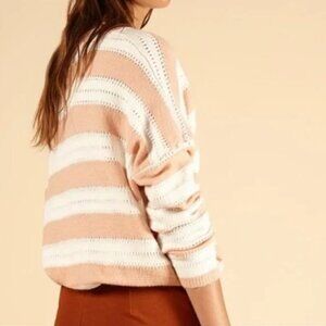 Great condition, new with tags. FRNCH Paris. Nadiege Perforated Knit Striped Sweater. White with tan/pink stripes.