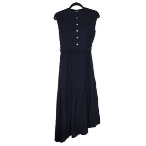 FRNCH Paris Navy Blue Button Back Midi Dress Sz S Asymmetrical Hem Sleeveless