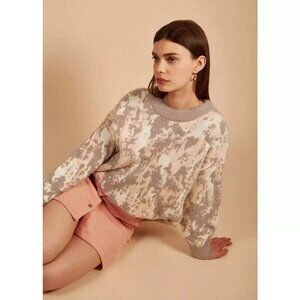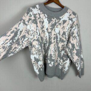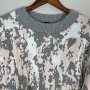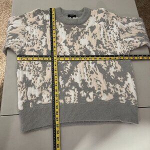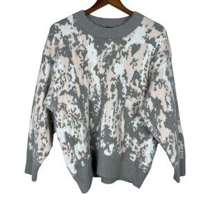FRNCH Paris Sweater Womens S/M Nadera Fuzzy Crew Neck Knit Gray White Soft Cozy Small / Medium