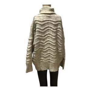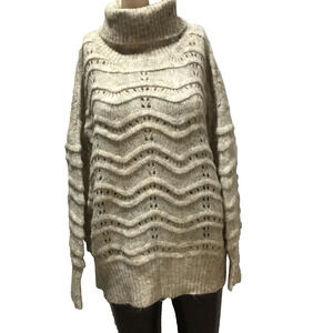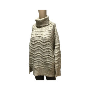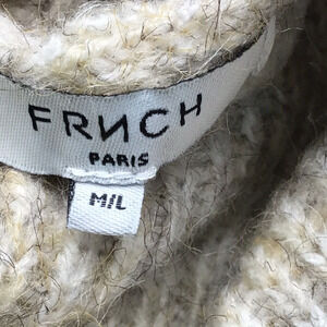 FRNCH Paris Womens M/L Tan Turtleneck Sweater Open Chunky Knit Cozy NWOT