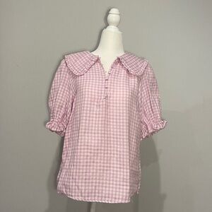 FRNCH Purple Gingham Collared Blouse-Size:L
