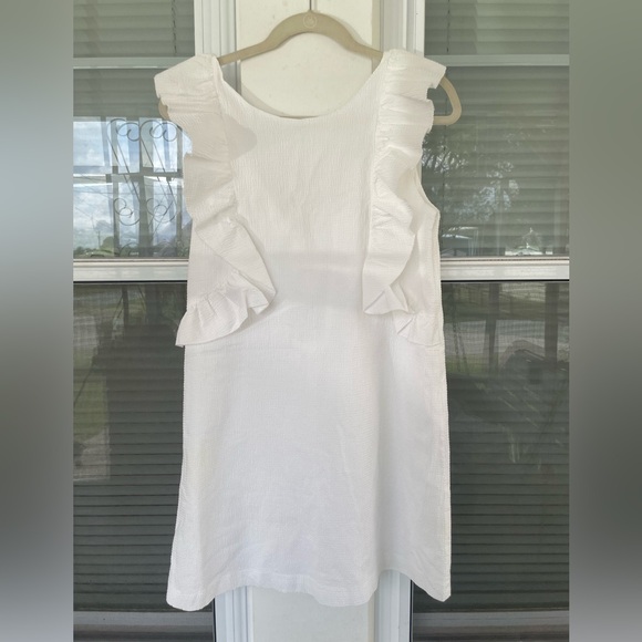 EUC mini dress. No tears, stains, or rips. Features ruffles details that flow into a v-cut back. Textured cotton material. Perfect for graduation, special occasions, bridal looks, or any holiday. Size m