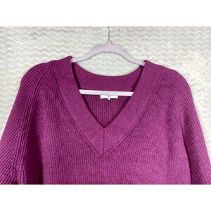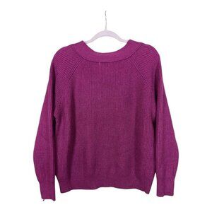 FRNCH V-Neck Women’s Ribbed Knit Pullover Sweater Fuschia Size M/L