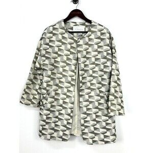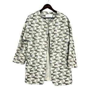 FRNCH Womens Open Jacket Metallic Ivory Silver Gold Medium Large Anthropologie R4