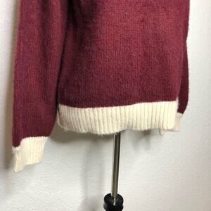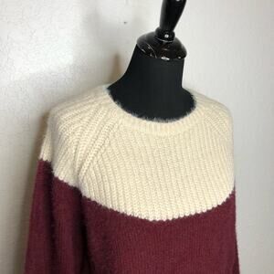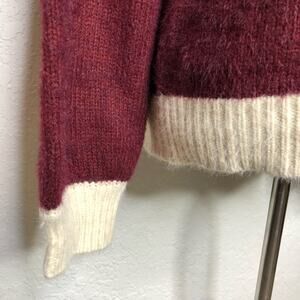 FRNCH cream maroon color block fuzzy sweater size Medium / Large M/L