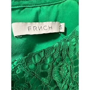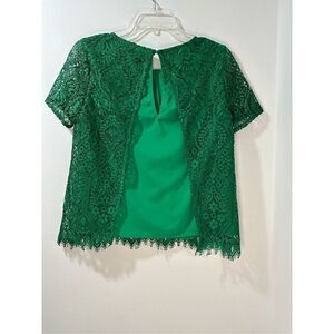 FRNCH women’s short sleeve green lace overlay top button closure size S #35-0890