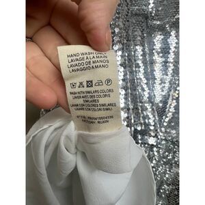 Sparkle, slay and dance the night away in this silver, sequin skirt by FRNCH. Skirt is fully lined and features three ruffle tiers with a zippered back.