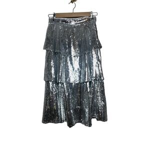 FRNCH Paris Evaleen Sequin Tiered Midi Skirt Sz. S